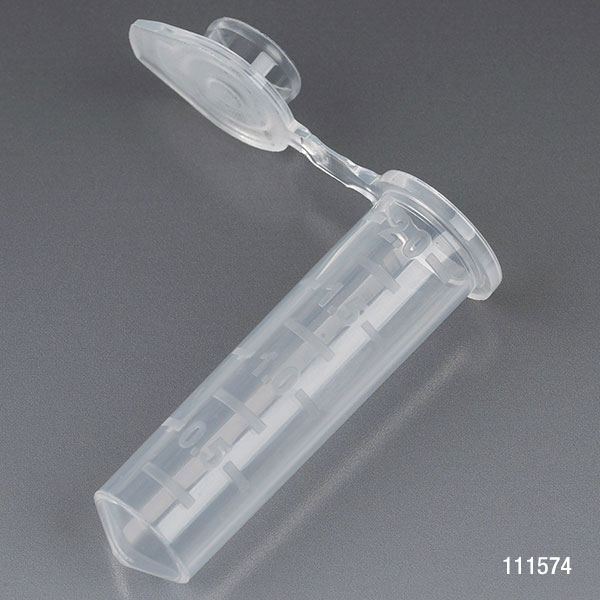 Microcentrifuge Tube, 2.0mL, PP, Attached Snap Cap, Graduated, Natural, Certified: Rnase, Dnase and Pryogen Free, 500/Stand Up Zip Lock Bag